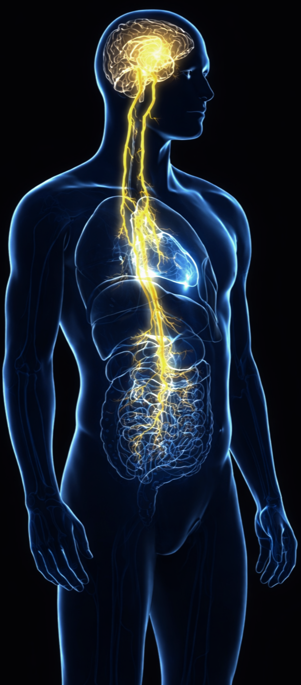 The Vagus Nerve is the body's largest sensory pathway. Nearly 80% of its fibers carry signals upward—from body to brain.